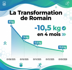 Après quelques mois, nous avons fait évoluer le programme en augmentant la dépense énergétique, en privilégiant des séances de coaching axées à 70–80 % sur le travail cardio.